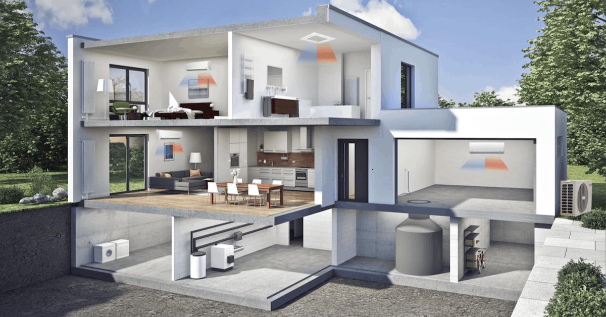 Außen- und Inneneinheit sind räumlich voneinander getrennt.